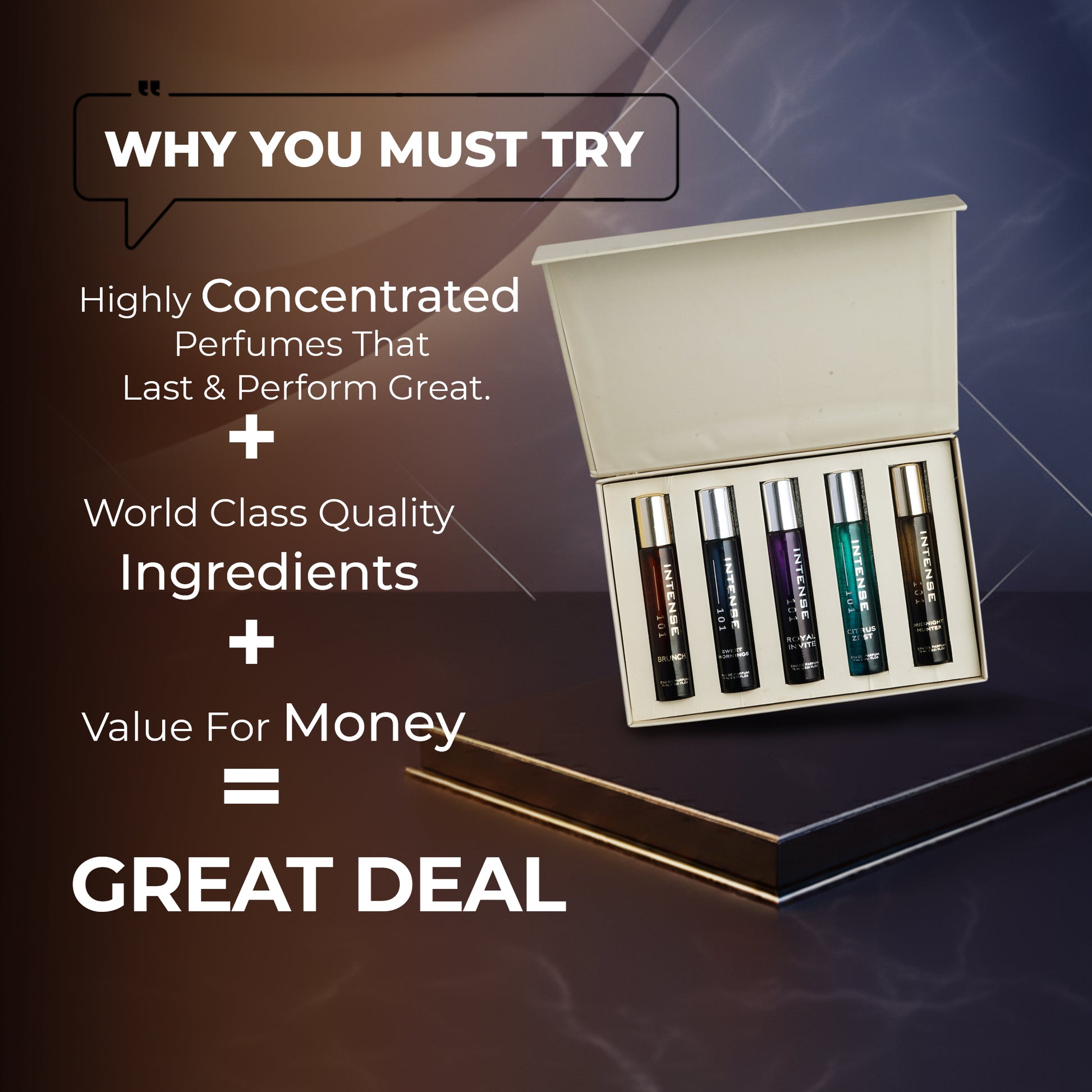 Premium Perfume Gift & Discovery Set for Men – Highly Concentrated Long-Lasting Fragrances | 5-Piece Travel-Friendly Collection 15ml each | Made to suit Indian Climate